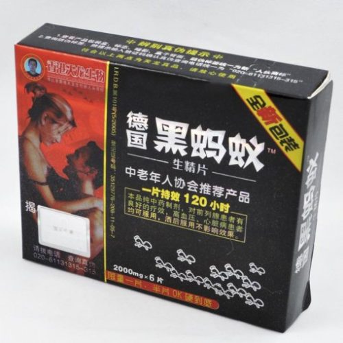 德國黑螞蟻促進睾丸血液循環,增強身體天然荷爾蒙製造,激活性動力,增加陰莖血液容量,使勃起堅硬持久。增強性動力,產生性衝動脈衝,性慾望明顯增強,快速達到主動性勃起。