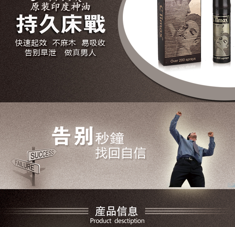 1.climax持久噴劑專為東方男性研制延時效果顯著,持久同時更加威猛!充分滿足幸伴侶!