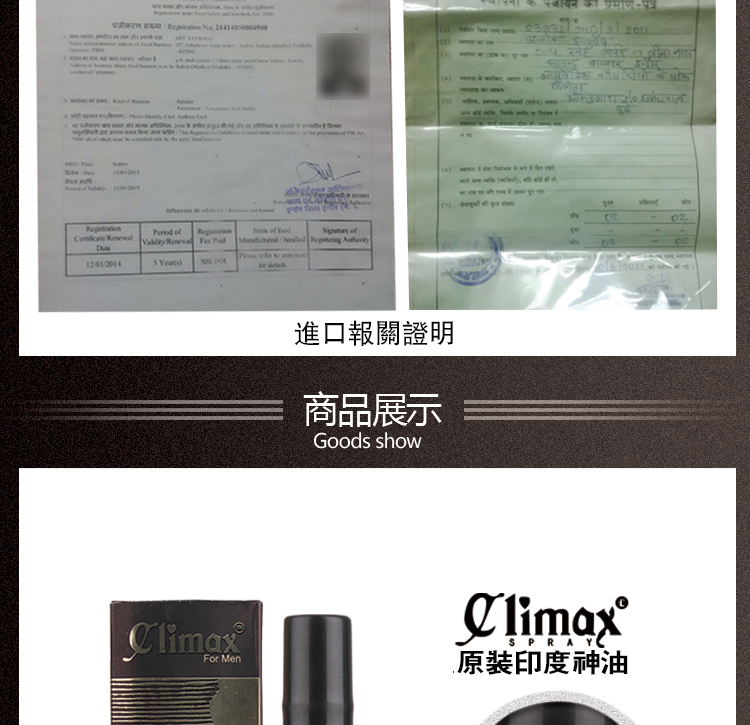 【產品名稱】印度神油 Climax 、Climax持久液、 Climax延時噴霧