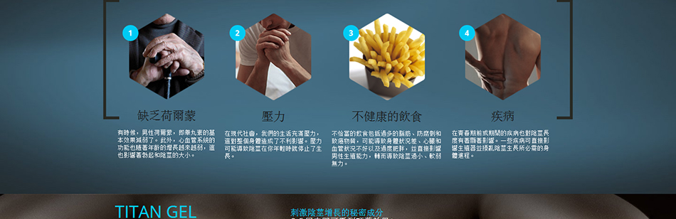 因為研發出了Titan Gel的配方,男人不再受到陰莖短小煩惱,不再需要做昂貴且危險的手術。男性性器官大小的增加是逐步的,但是有保證的。使用一個月後,陰莖的長度可以平均